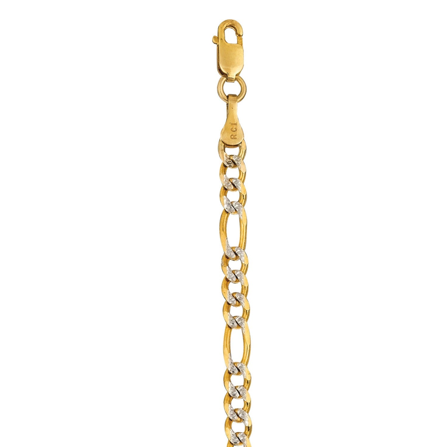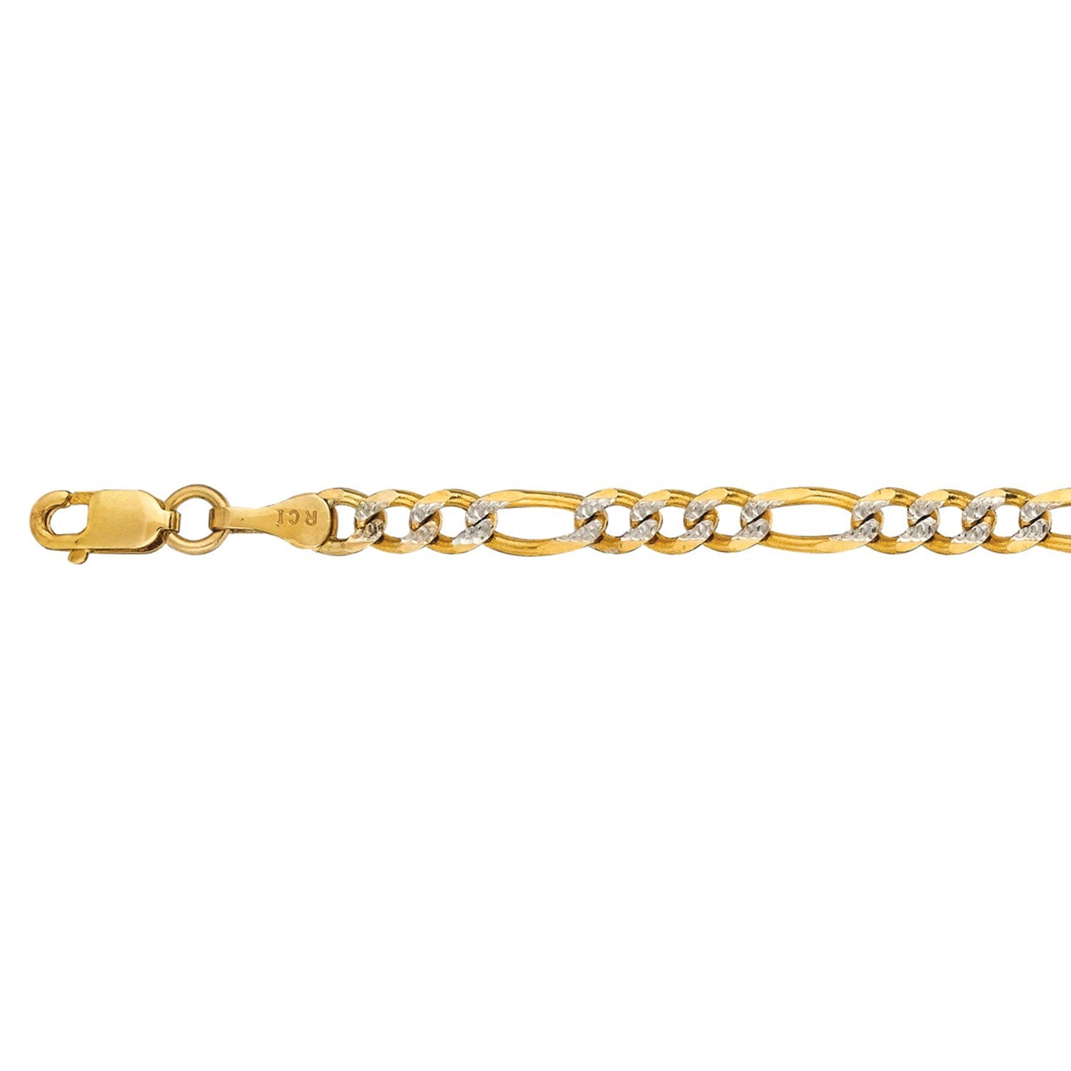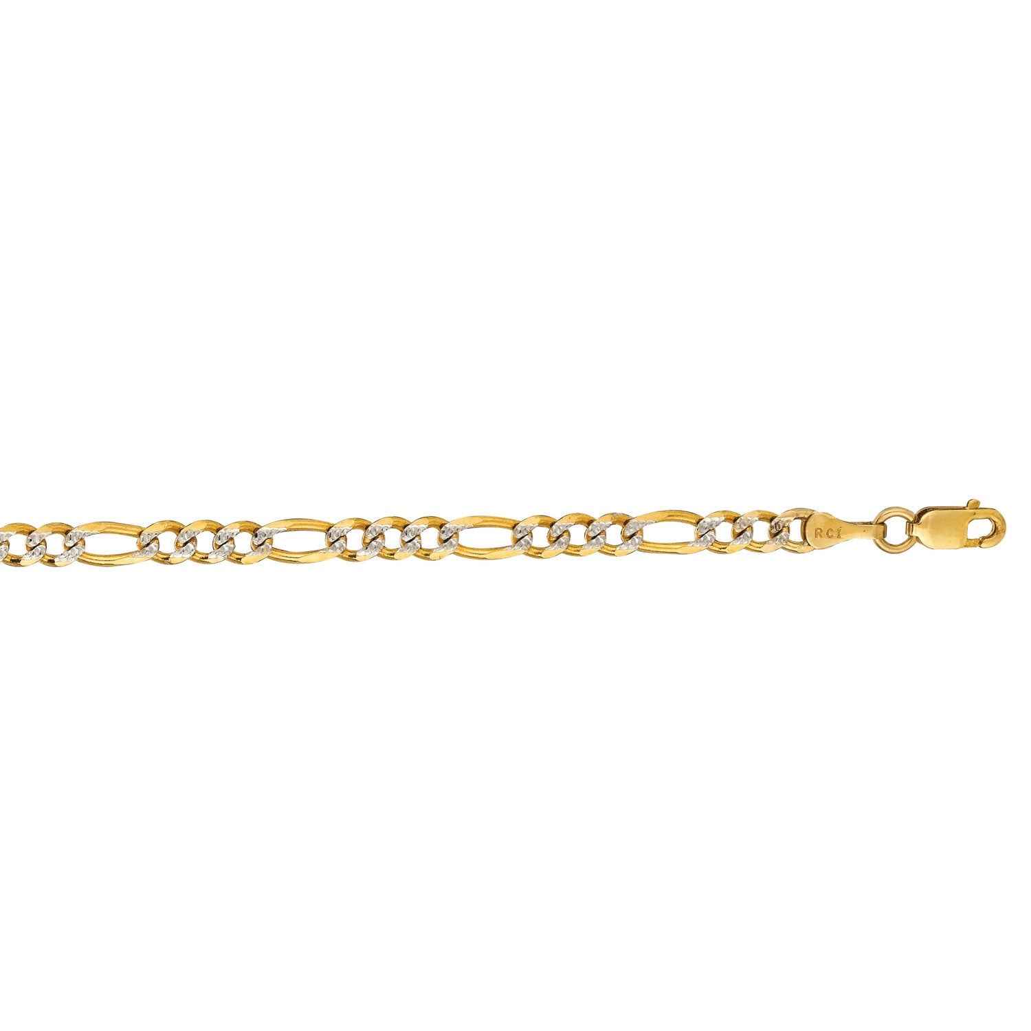 JewelStop 14K Yellow Gold Polished Finish 3.65mm White Pave Figaro Chain with Lobster Lock - 18",20",22",24"