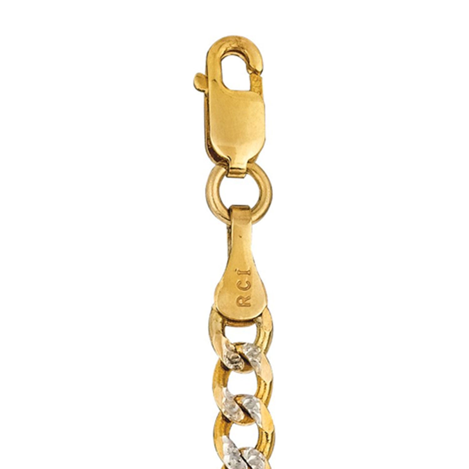 The JewelStop 14K Yellow Gold Polished Finish 3.65mm White Pave Figaro Chain with Lobster Lock is a striking and sophisticated piece that exudes both luxury and timeless charm. Crafted from premium 14K yellow gold, this chain features a polished finish that amplifies its natural warmth and shine, adding a rich, vibrant glow to any ensemble. The unique Figaro design alternates between short and long links, offering an eye-catching and stylish pattern. At 3.65mm in thickness, this chain is substantial enough to make a statement while remaining comfortable for daily wear. The white pave detailing on the links adds an extra layer of sparkle, making it a perfect option for both casual and formal occasions. Equipped with a sturdy lobster lock, the chain ensures secure closure, allowing you to wear it confidently without concern. The 18-inch length offers a versatile fit, comfortably resting around the base of the neck, making it ideal for showcasing pendants or wearing on its own for a refined look.