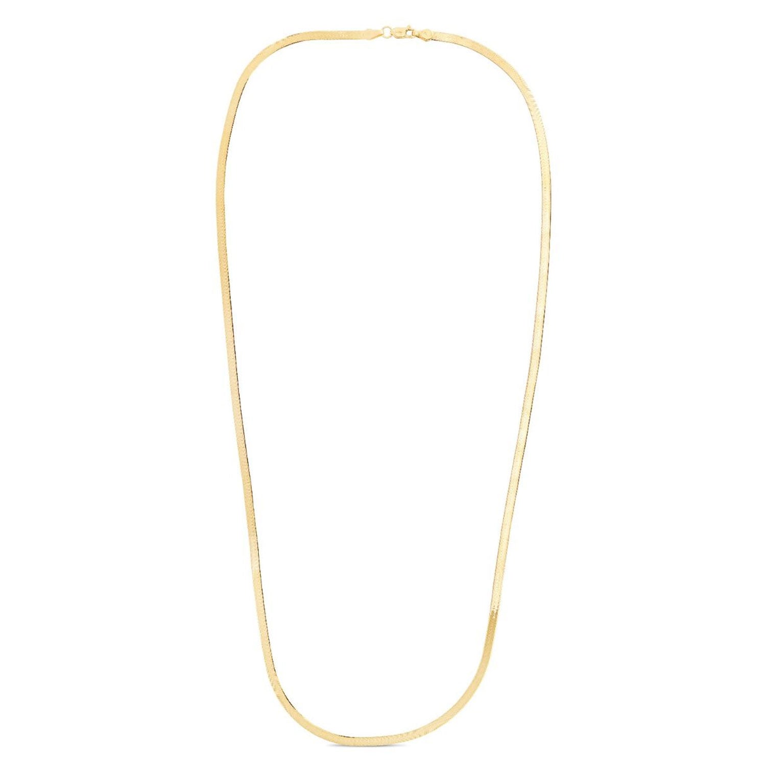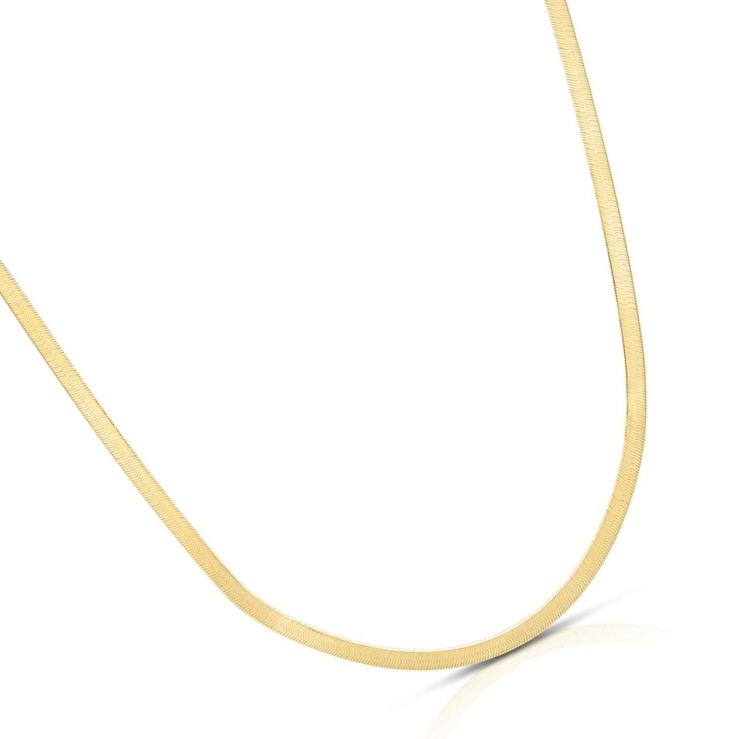 This stunning 14k yellow gold herringbone chain necklace offers a sleek and elegant design that’s perfect for any jewelry collection. This chain features a 1.5mm width, showcasing a beveled herringbone pattern that lies flat against the skin, creating a smooth and sophisticated look. Its polished finish enhances the golden sheen, giving it a radiant and luxurious appeal. This necklace is secured with a durable lobster clasp, ensuring both style and functionality. Ideal for wearing alone or pairing with a pendant, this herringbone chain is a timeless piece suited for both casual and formal occasions.